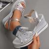 Fashion Comemore 2025 Summer Plus Size Mesh Sandals Women Bling Crystal Wedge Platform Sandaels for Women Fashion Buckle Woman Shoes
