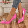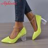 Fashion Aphixta New Luxury Crystals Bow Transparent Bead Chain 7cm Transparent Chunky Heels Pumps Women Shoes String Bead Belt Chain