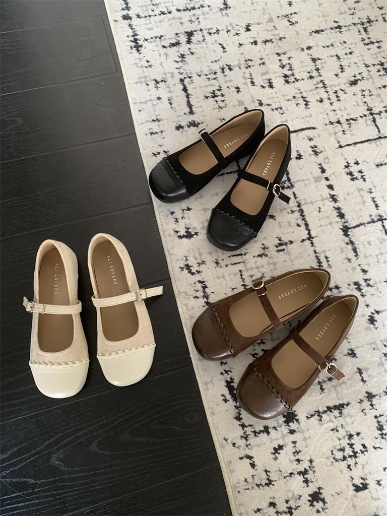 Fashion IPPEUM Women Mary Janes Shoes 2025 New Round Toe Buckle Ballet Flats Black PU Leather