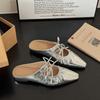 Fashion Comemore Baotou Half Slippers for Women Spring Summer Casual Mules Mary Jane Single Shoe Solid Flat Bottom Butterfly-knot Slides