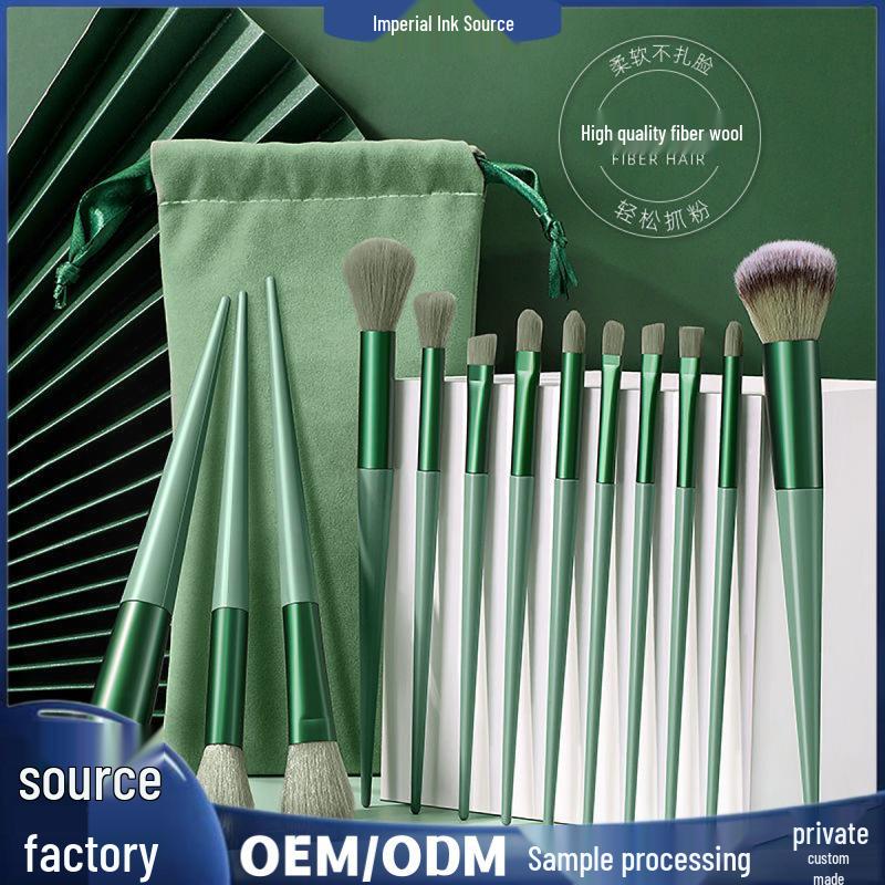 Portable 13-Piece Makeup Brush Set: Includes Loose Powder, Blush, Eyeshadow, and Lip Brushes with Storage for Complete Makeup Tools.