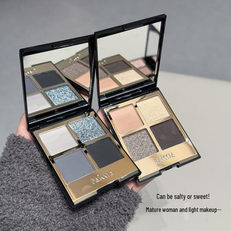 FAICCIA Fei Xi Mojito Four-Color Eyeshadow: Brown Earth Tone, Smoky Matte, Shimmer, Blue System.