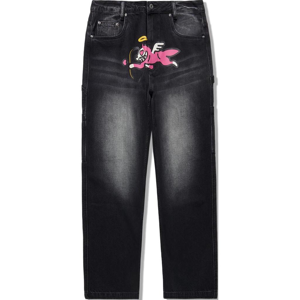Li Ning Printed Washable Mid-Rise Comfortable Breathable Versatile Straight Leg Jeans Men jeans Black AJQU171-1