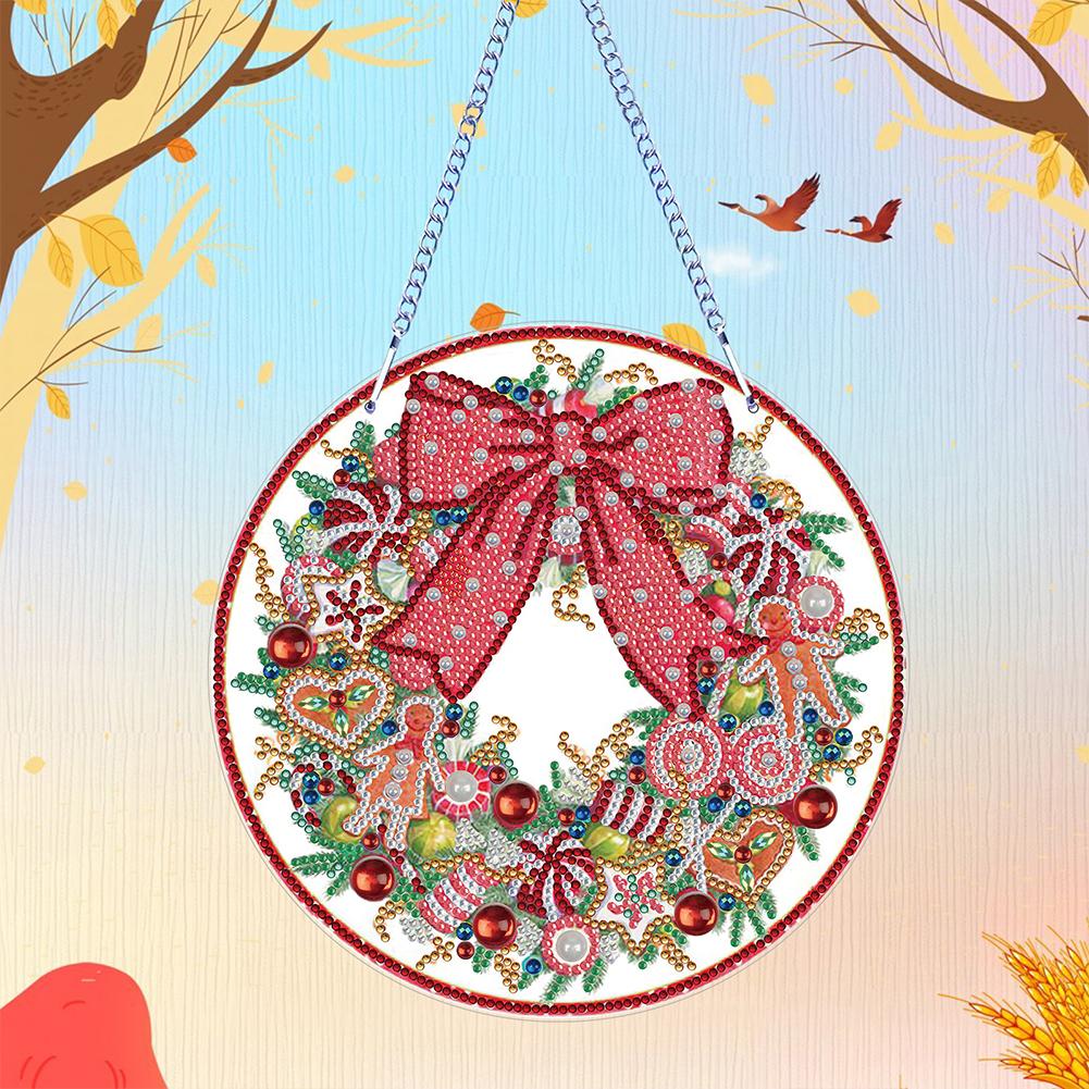 5D DIY Diamond Painting Wreath Ornament Christmas Full Drill Garland Diamond Wall Decor Wreath for Home Window Door Decor Gift