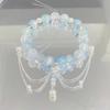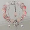 Korejský růžový křišťálový květinový motýlí přívěsek korálkový náramek pro ženy sladké korálky řetízkové náramky šperky dárky pro přítelkyni