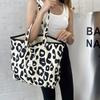 Leopard Print Canvas Tote Bag, Large Capacity Shoulder Bag Durable Lightweight Commuter Bag, Animal Pattern