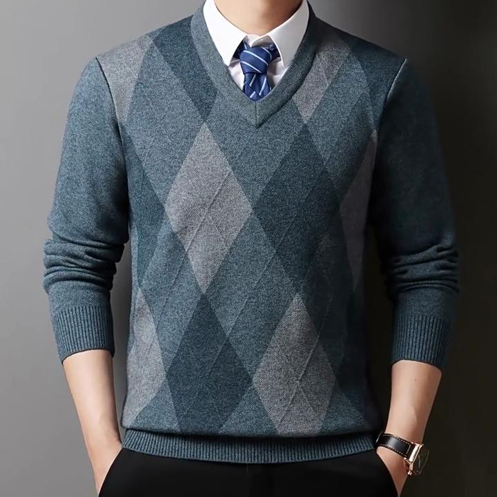 Podzimní a zimní svetr s výstřihem do V Pánský pulovr Základní svetr Žakárový s diamantovým vzorem Límec ve tvaru kuřecího srdce Pletený svetr