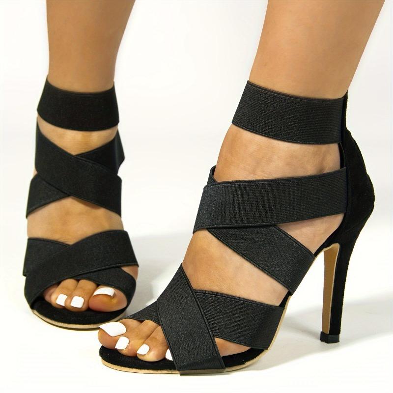 Women's Black Cover Stiletto Heels - Sexy Open Toe Jazz Dance Sandals with Elastic Cross Straps, Breathable Summer Fashion Heels, Performance Footwear