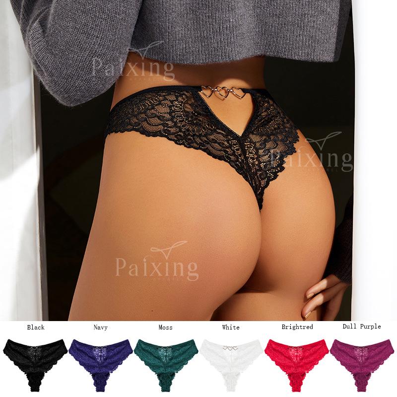 Černé krajkové kalhotky T-string se středním pasem a pohodlným výkrojem - Sexy dámské spodní prádlo plus size