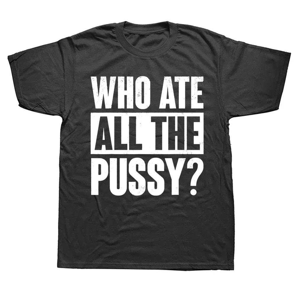 Novelty Who Ate All The Pussy Funny Saying T Shirts Graphic Cotton Streetwear Short Sleeve Birthday Gifts Summer Style T-shirt
