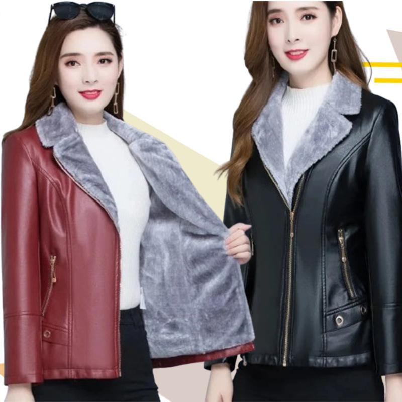 Podzim Zima Teplý Kabát z Umělé Kožešiny Dámská Kožená Bunda Dámské Slim Moto Biker Základní Bundy Plyšové Ležérní Krátké Svrchní Oblečení XL-6XL