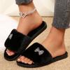 Móda Módní Mašle Detor Plyšové Pantofle Dámské Měkké Huňaté Domácí Bavlněné Pantofle Žena Otevřená Špička Protiskluzové Bavlněné Nazouváky Dámské