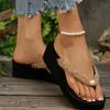 Fashion Fashion Pearl Platform Flip Flops for Women Summer Fabric High Heel Wedge Slippers Woman Vacation Comfort Non Slip Slides Female