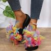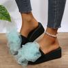 Fashion Mesh Flower Shaped Wedge Slippers Women 2025 Stylish Sequins Thick Sole Sandals for Woman Non Slip Soft Bottom Slides Mujer