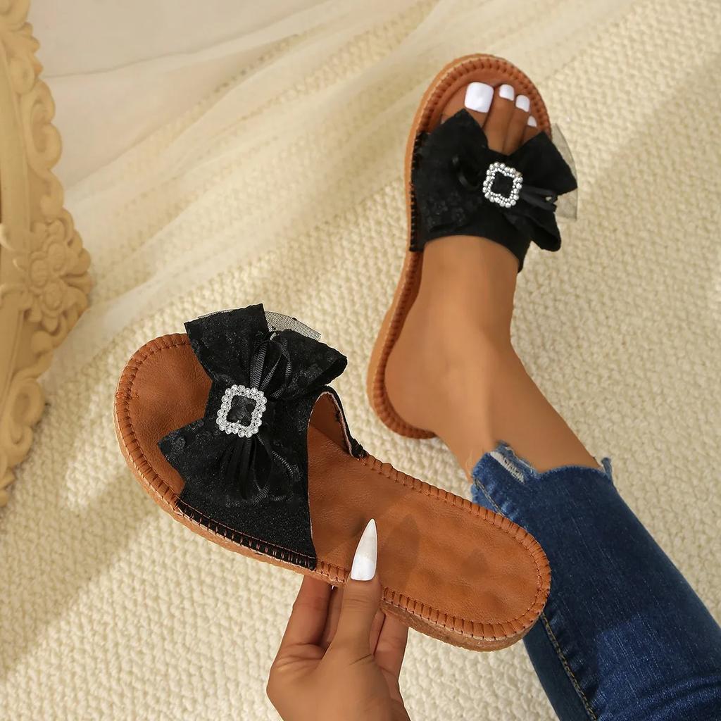 Fashion Women's Fashion Student Vacation Beach Sandals 2025New Wear Resistant Flat Slippers Women's Fashion Bow Decorative Women's Shoes