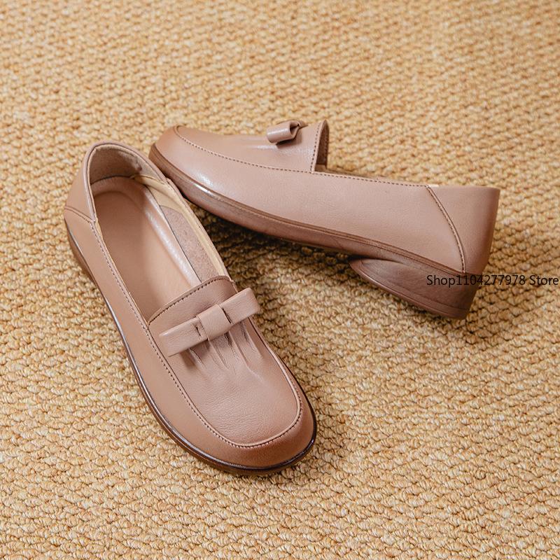 Fashion New Spring Women Shoes Low Top Round Head Loafers Waterproof Soft Leather Shoes Solid Color Versatile Casual Shoes Zapatos Mujer