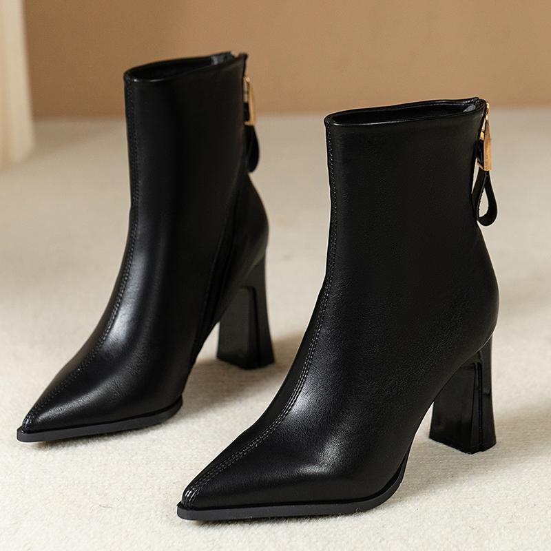 Móda 2025 Podzim a Zima Nové Francouzské Špičaté Univerzální Blokový Podpatek Temperamentní Módní Pohodlné Kotníkové Boty na Vysokém Podpatku Ženy