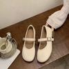 Huge soft and easy to wear single shoes women's spring and autumn round head square buckle women's shoes inner height increase beige Mary Jane shoes