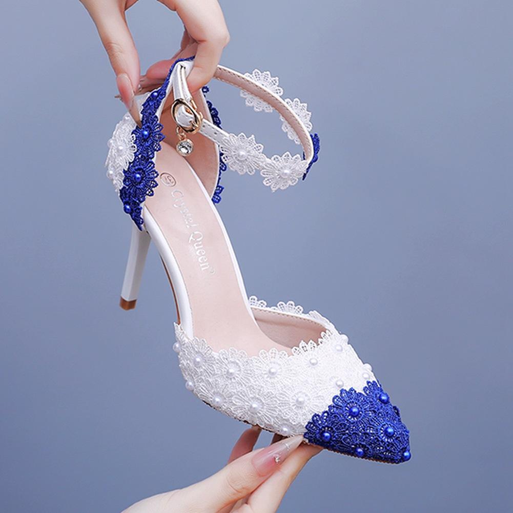Fashion Lace Flower Banquet Stage Latin Dance Shoes Sandals Thin-Heeled Sandals Women'S Ball Cheongsam Pointed-Toe Sandals Color-Blockin