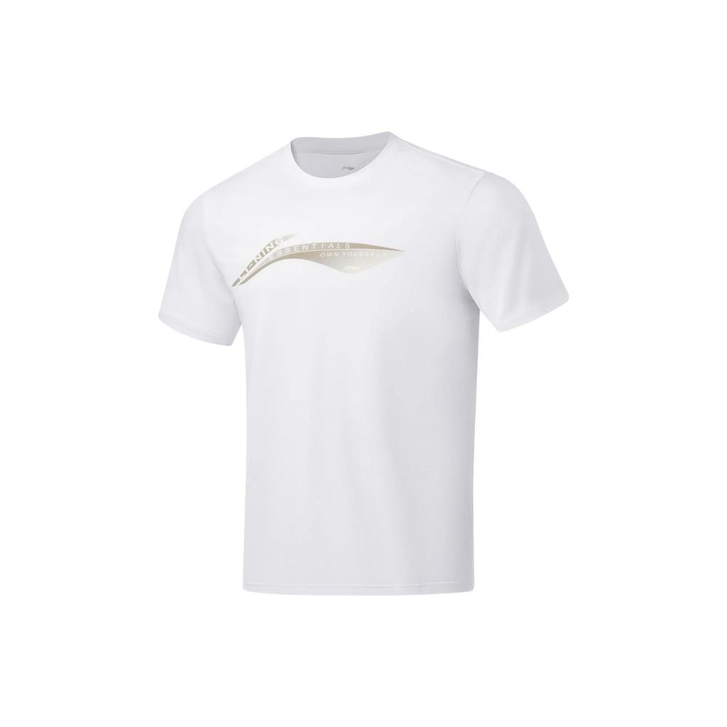 Li-Ning Fitness Series Printed Letter Crew Neck Short Sleeve T-Shirt Men Tops White ATST101-2