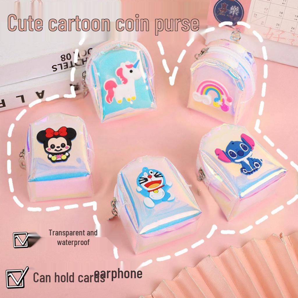 Korejský styl dívčí laserová peněženka na mince - Roztomilá mini peněženka na rtěnku, sluchátka a klíče