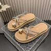 Set pantoflí s tlustou podrážkou a otevřenou špičkou, dámské letní nové módní květinové kamínkové univerzální sandály