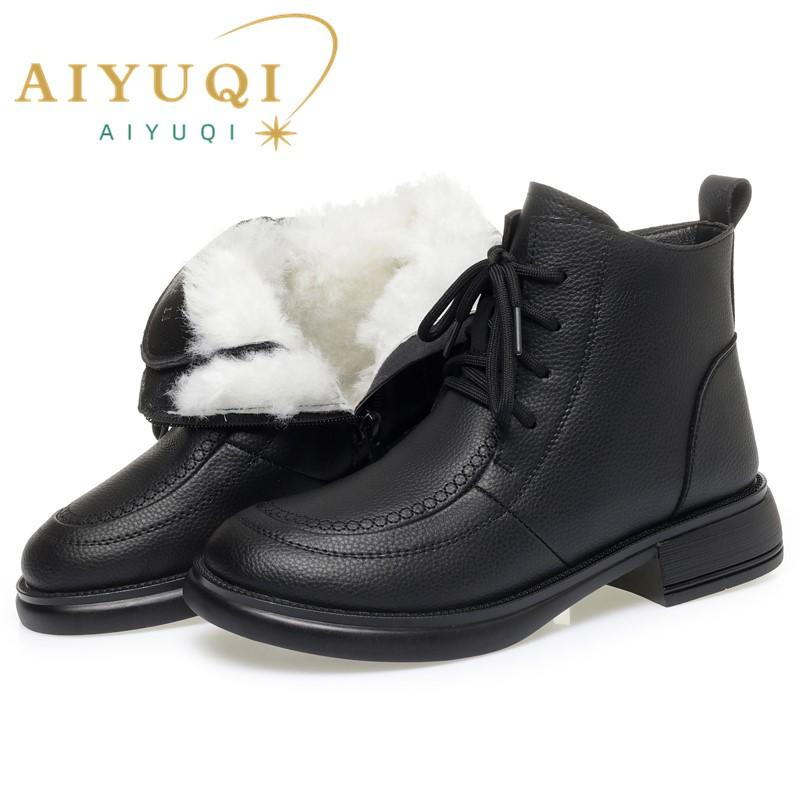 Módní dámské sněhule AIYUQI z pravé kůže 2025 Zima Nové přírodní vlna dámské kotníkové boty protiskluzové velká velikost máma boty