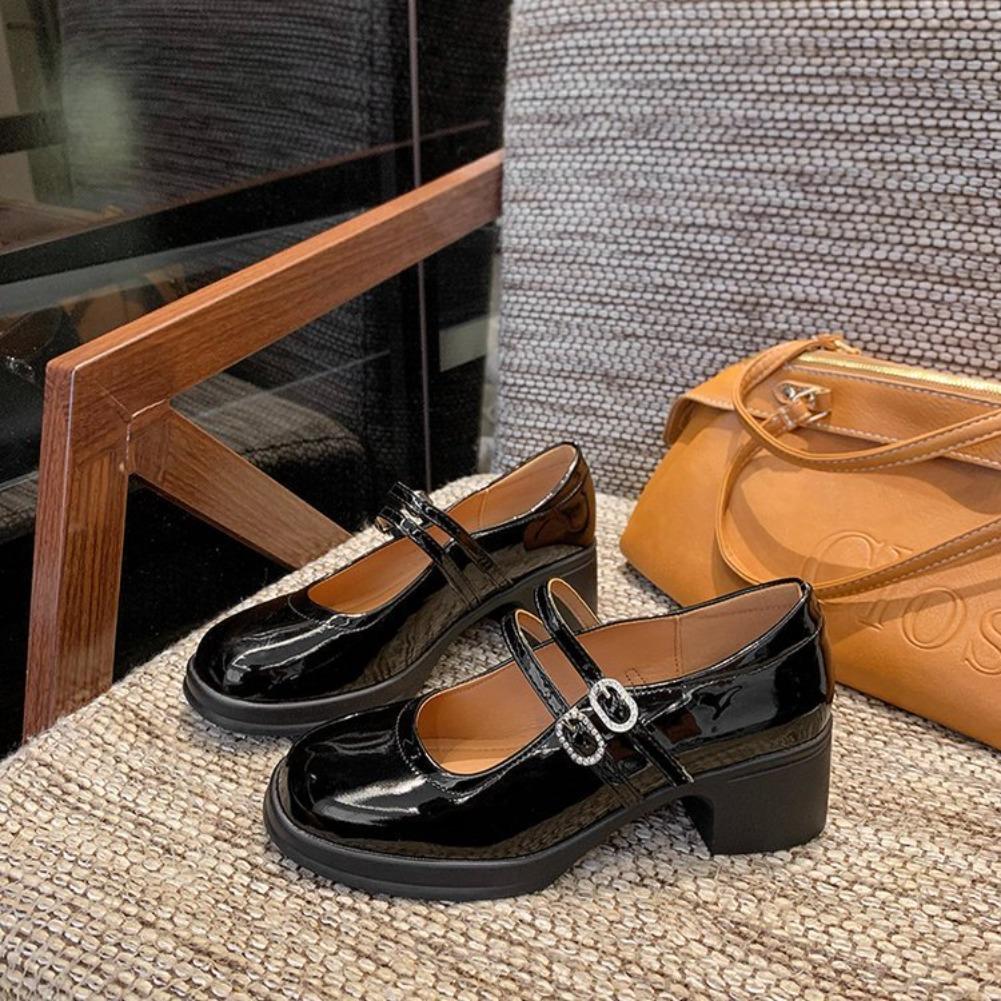 Fashion New Women Pumps Round Toe Shallow Slip on Loafers Ladies Patent Leather Thick Heel Casual Office Mary Jane Shoes