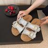 Fashion Hot Selling New 2025 Ladies Flat Sandals Summer Wear Soft Wood Sole Single Strap Slippers Comfortable Canvas Slippers for Women