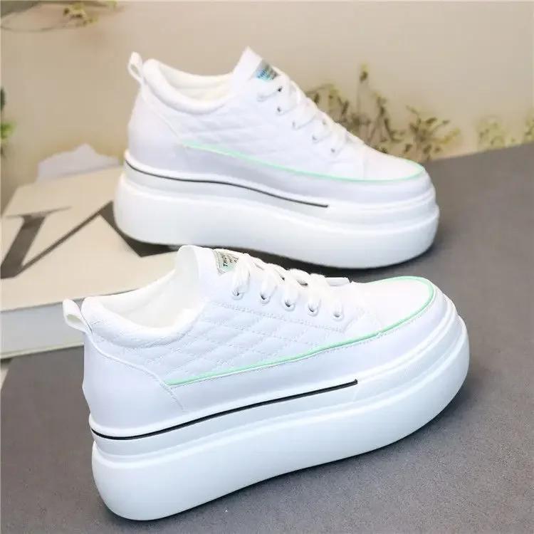 Fashion Platform Shoes All-Match Women's Leather Breathable White Shoes Invisible Height Increasing Insole Comfort and Casual Sneakers