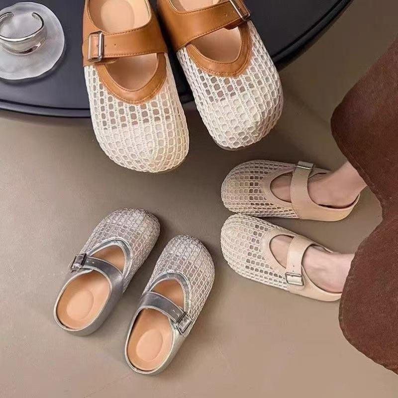 Silver bag head half slippers women's summer wear new high-end sandals one pedal fishing net breathable single shoes