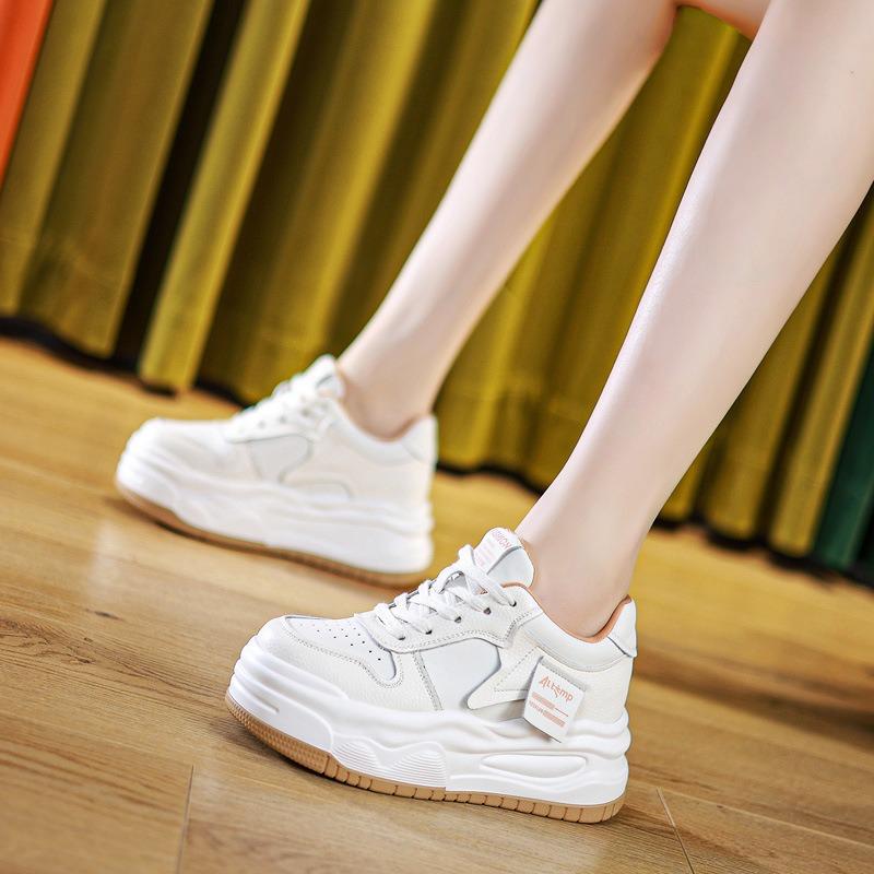 Spring new slope heel muffin thick sole light white shoes casual thin inner height small women's shoes tide