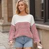 Ladies Autumn Winter Long Sleeve Round Collar Striped Pullover Knitted Sweater Knitwear Top