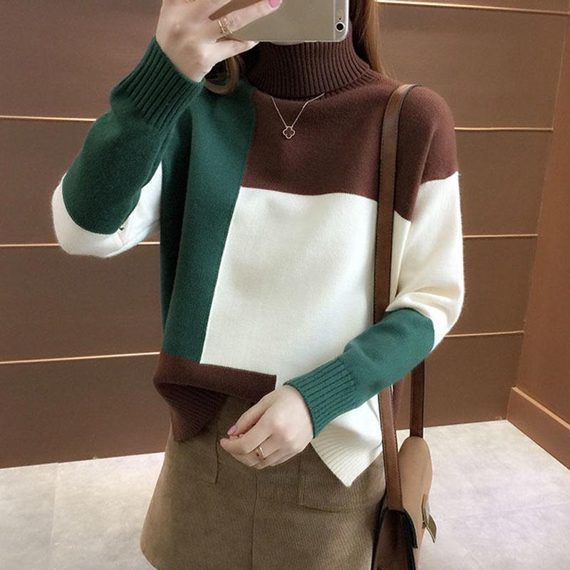 Dámský pletený pulovr Podzim Zima Teplý rolák Pletenina Barevný blok Pulovr Volný Ležérní Dojíždění