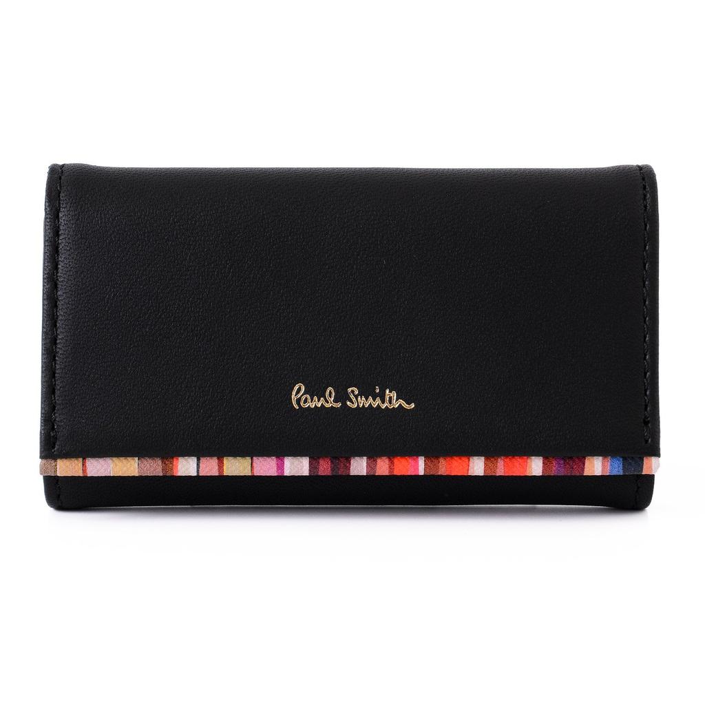 Paul Smith Crossover Stripe Trim Genuine Leather Key Holder Case/Key (Black)
