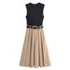 Dámské šaty Pás Skládané Midi šaty Dámské šaty bez rukávů Dámské pletené společenské šaty