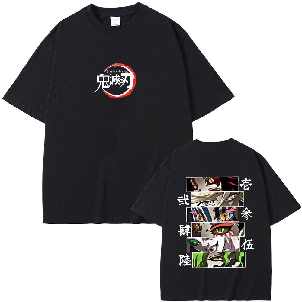 Anime Demon Slayer Kokushibo Douma Akaza Hantengu Gyokko Giyuutarou Potisk Očí Pánské Dámské Ležérní Bavlněné Vintage Tričko
