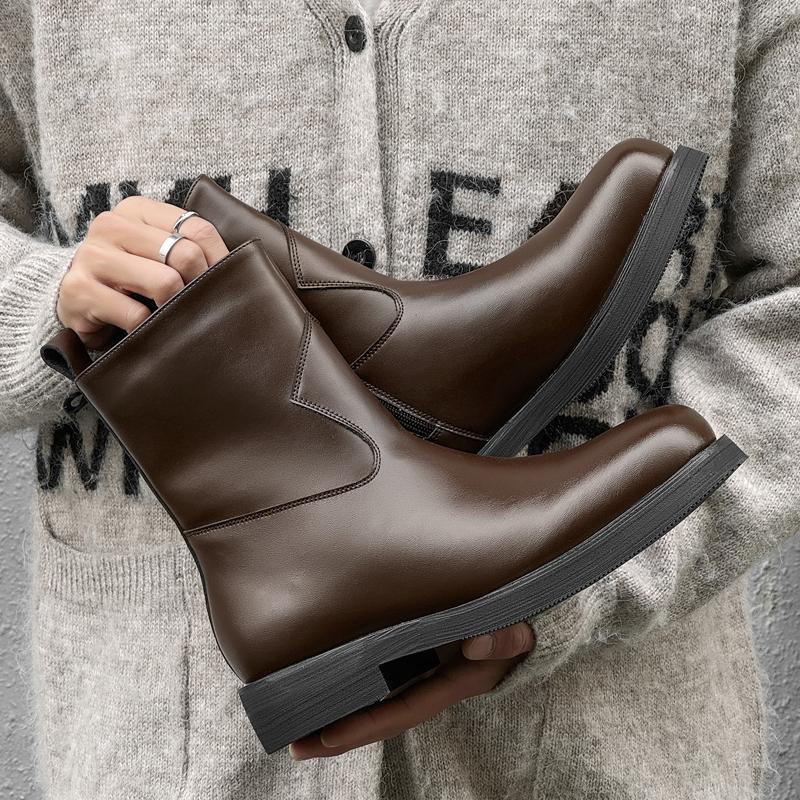 Fashion Men's Leather Boots 2025 Fashion Thick Bottom Side Zipper Versatile Shoes Luxury Quality Spring Autumn Comfy Mens Ankle Boots