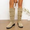 Módní dámské semišové kožené ploché nazouvací boty s kovovou přezkou podzimní vysoké jezdecké boty ke kolenům ležérní dámské punkové dlouhé boty boty žena