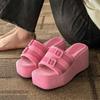 Módní pantofle na platformě s čtvercovou špičkou, přezkami na pásku, manšestrové, s otevřenou špičkou, dámské sandály 2025 léto nové, designové boty, módní klínkové sandály
