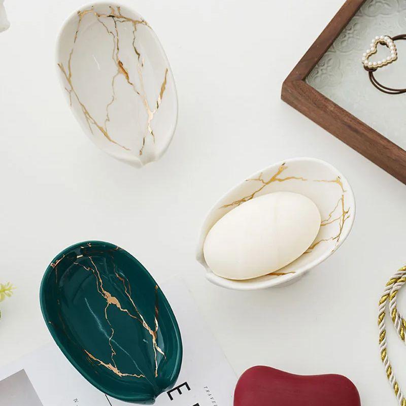 Ceramic Bathroom Soap Dish Green/White/Black Soap Box Drain Soap Box Shower Storage Rack Nail Free Soap Dish Tray