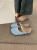 Fashion Women's Half Slippers 2025 Spring Summer New Vintage Fly Weave Baotou Flats Fashion Square Button Slip on Outdoor Casual Sandals