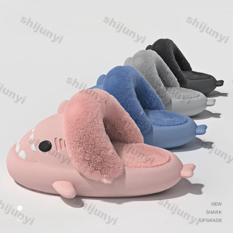 Módní dámské žraločí bavlněné pantofle Zimní voděodolné vnitřní protiskluzové pantofle Plyšové teplé párové Silná podrážka Odnímatelné žraločí žabky