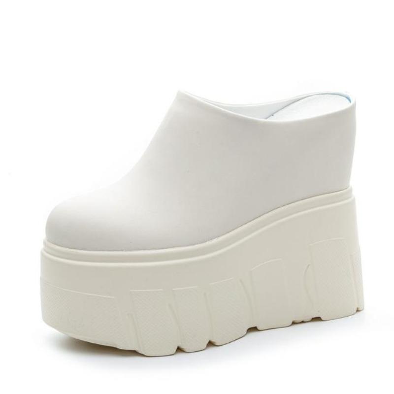 Fashion 14CM Ladies Summer Shoes Slip on Genuine Leather Fashion Women Wedge Slipper Platform Wedge Sandals Sandals