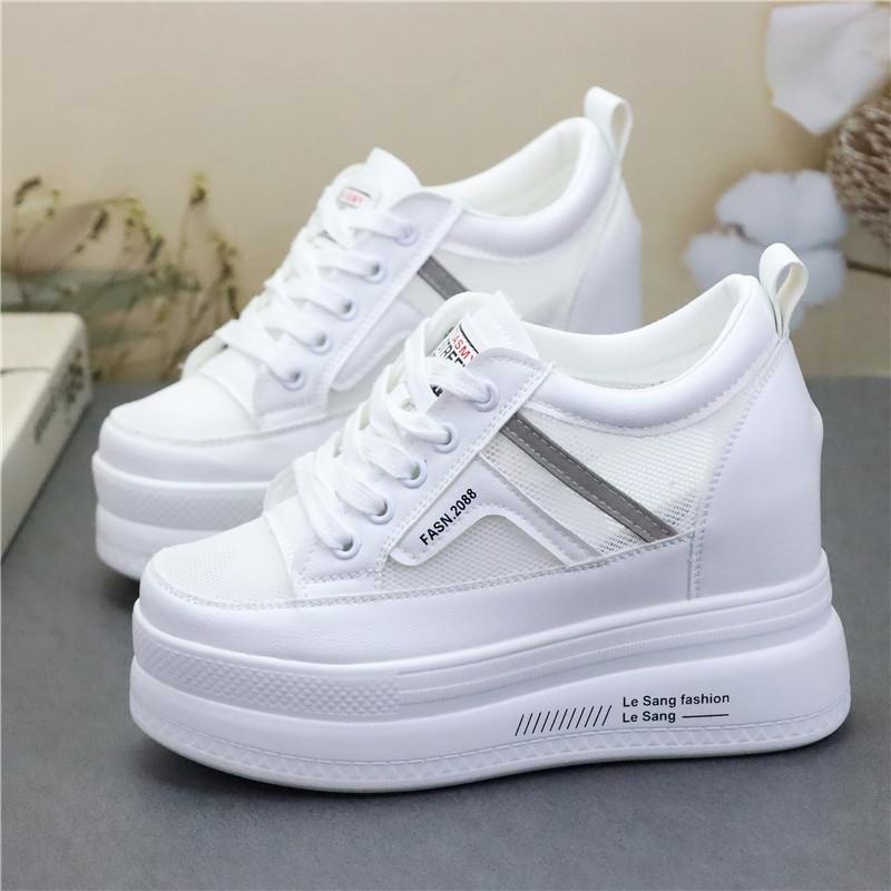 Fashion 10CM Air Mesh Synthetic Leather Platform Wedge Sneakers High Brand Casual Women Shoes Ladies Vulcanize Summer Breathable