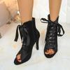 Fashion Plus Size Fish Mouth Lace-up High Heel Slide Boots Women's Fashion Round Toe Cutout Non-slip Stiletto Sandals