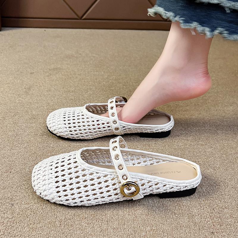 Fashion French Woven Hollow out Women's Sandals 2025 New Versatile Single Strap Casual Clog Shoes Microfiber Upper Rubber Sole