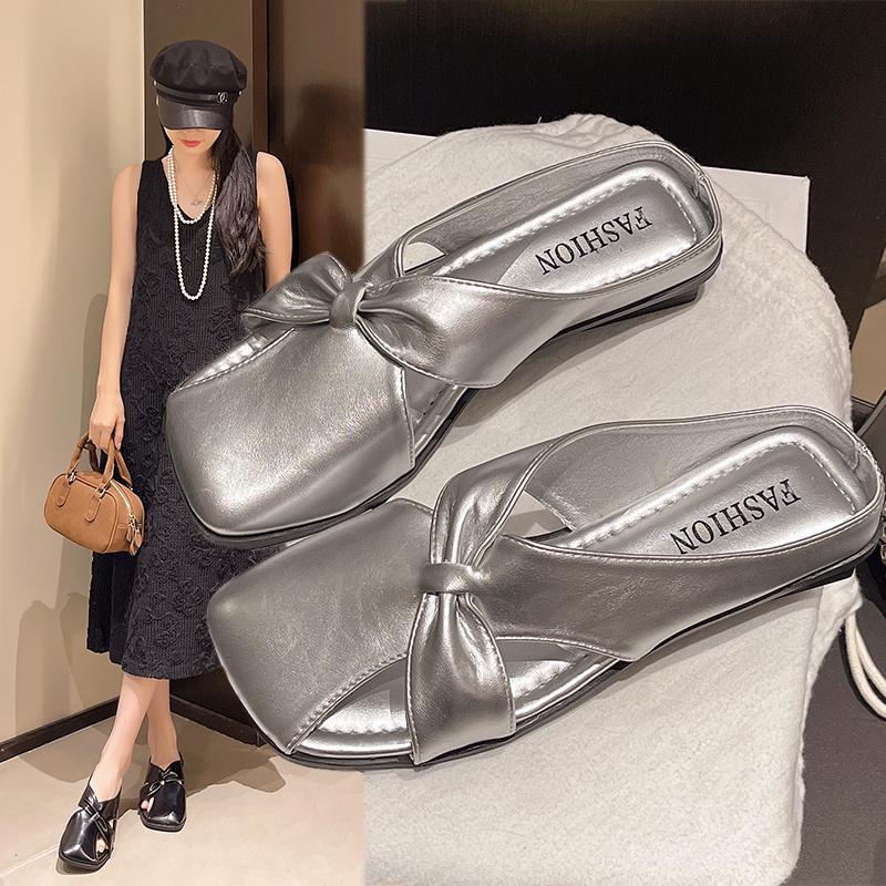 Fashion New Women's Metallic Crisscross Strap Slides - Textured Footbed with Bow Accent & Non-Slip Sole for Casual Comfort Zapatos Mujer