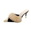 Fashion Women's Metal Pointed High Heels Spring Baotou Shallow Mouth Leather Cover Foot Anti-slip Wear-resistant Slippers