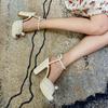 Móda Nové Dámské Sandály na Vysokém Podpatku Bílá Perlová Spona Kulatá Špička Robustní Podpatek Svatební Boty